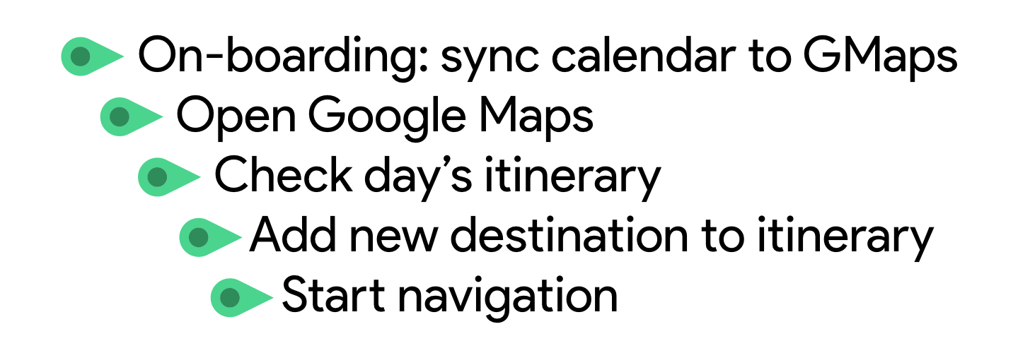 Learning that our users will be using Google Maps Multi-Stop feature throughout their day, it was more helpful to map out the User Journey.