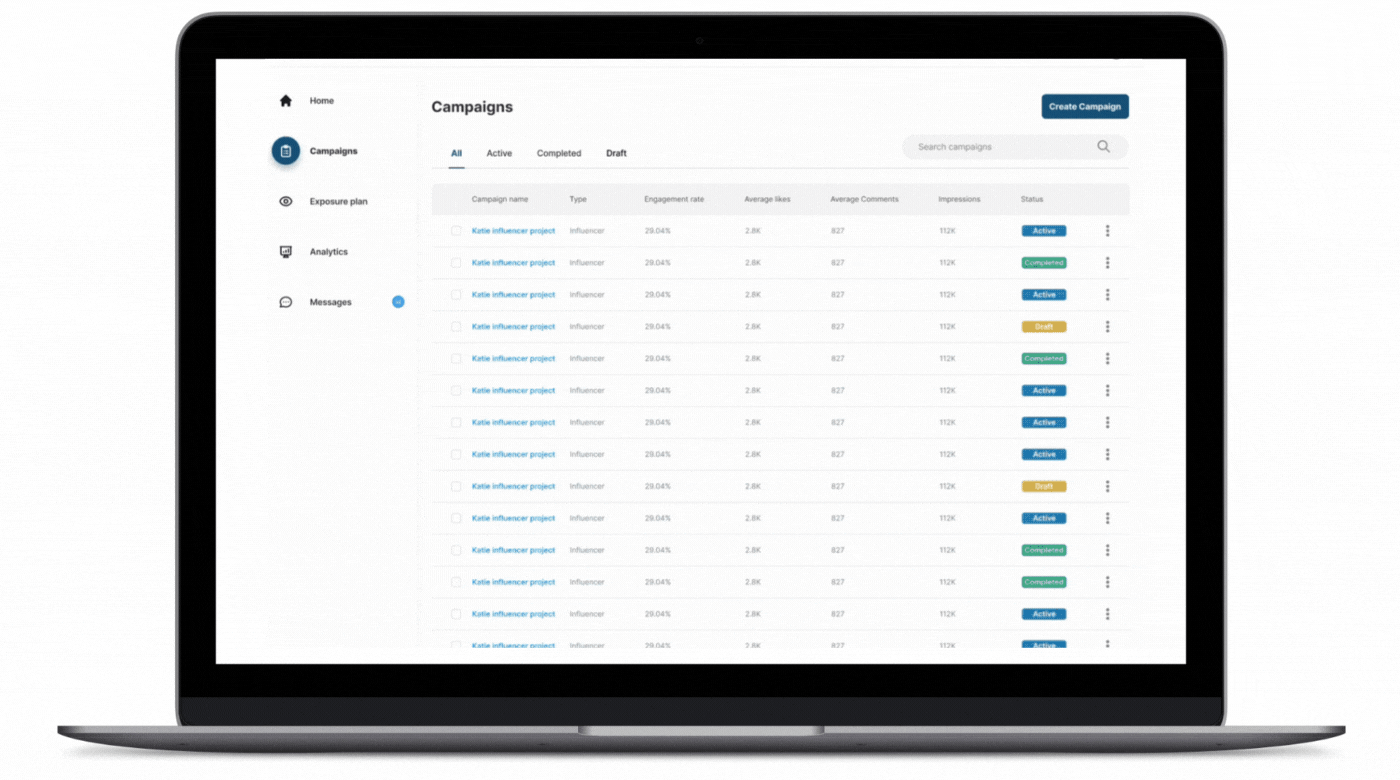 Instead of users browsing through profiles, an internal team member would manually curate a list of recommended influencers based on campaign criteria. This simplified the experience while still connecting users with relevant talent.
