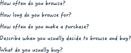 To learn more about their browsing habits, each user was asked these preliminary questions listed below. The findings helped shape user personas based on their buying intentions.