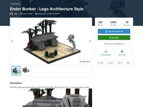 Studio Gallery is a place where designers can display and share their creativity, building on top of pre-existing creations. We did not want to discourage builders from sharing their ideas or completely remove all infringing creations from the site. Removing all infringing creations would decrease the MOCs count to only a few thousand. We decided the best way to handle this was to hide the infringing information from the creation page.