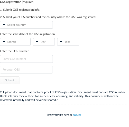 Here we focus on OSS verification. The form includes the start date and registration number which I drew from the registration scans we received from our users. We also require sellers to upload the scan of their registration. We would be able to review the scan and make sure that it wasn’t a fraudulent registration.